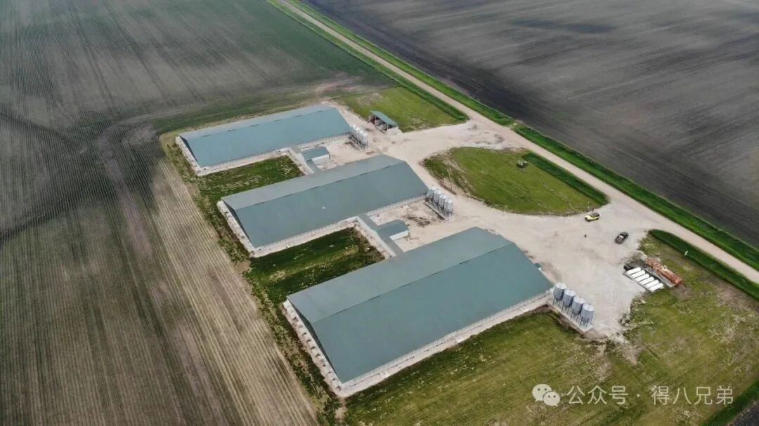 Eine US-amerikanische Kundenfarm, die von Debaxiong Brothers betreut wird, ist von mit Mais und Sojabohnen bepflanzten Ebenen mit speziellen Getreidesilos umgeben. Im Vergleich zu heimischen Betrieben derselben Größenordnung werden dadurch enorme jährliche Ausgaben für Futtermittel und damit verbundene Kosten eingespart.