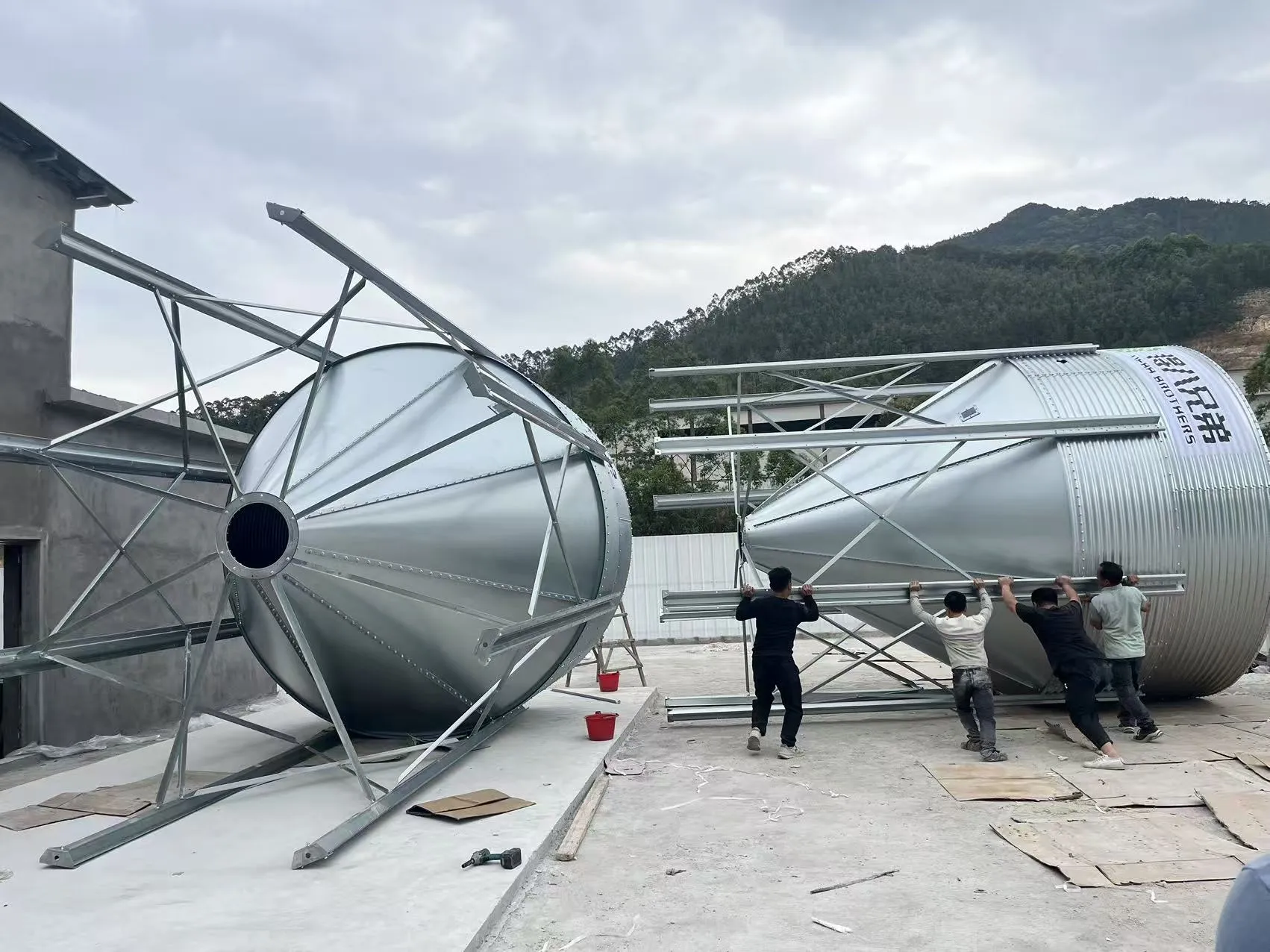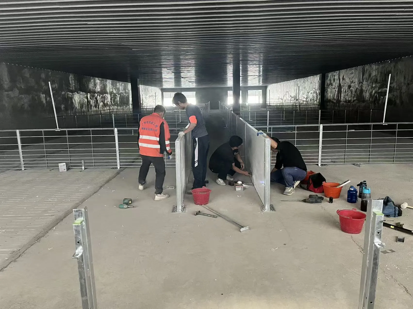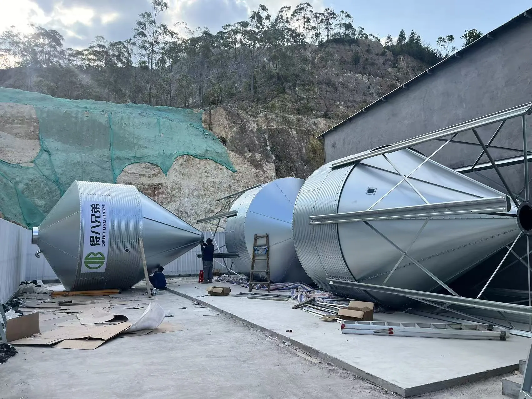 Die Bauzeit wird voraussichtlich drei Monate dauern. Derzeit sind die Arbeiter damit beschäftigt, Futtersilos zu installieren und die Ställe fertigzustellen, und die Bauarbeiten sind in vollem Gange.